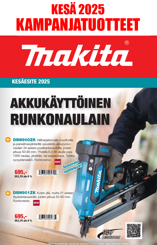 Hyllystä löytyy Makita työkoneita. Ja mitä ei löydy, pystymme toimittamaan muutaman arkipäivän toimitusajalla – usein jo seuraavaksi päiväksi!